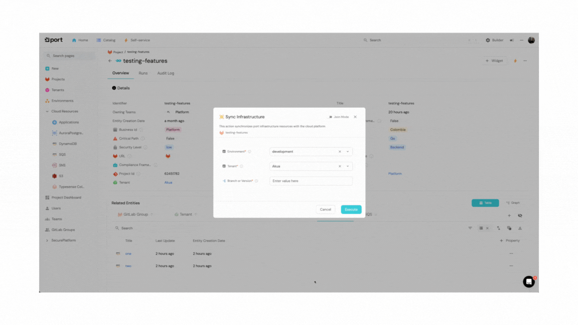 Para evitar que nuestro equipo de desarrolladores de producto tengan que aprender una herramienta de IaC sumado a que desde el equipo de Plataforma queremos tener la libertad de poder cambiar de rumbo si es que lo necesitamos, la gestión se hace desde Port (https://www.getport.io/), donde cada equipo responsable de la aplicación puede crear, actualizar y eliminar recursos con un simple formulario, ¿no me crees? te dejo un gif