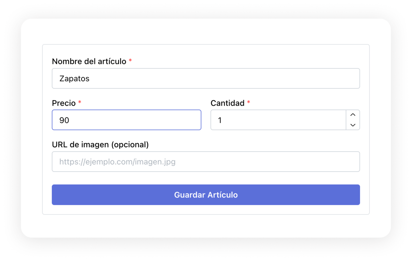 - El monto total se calcula automáticamente en base a los artículos cargados.