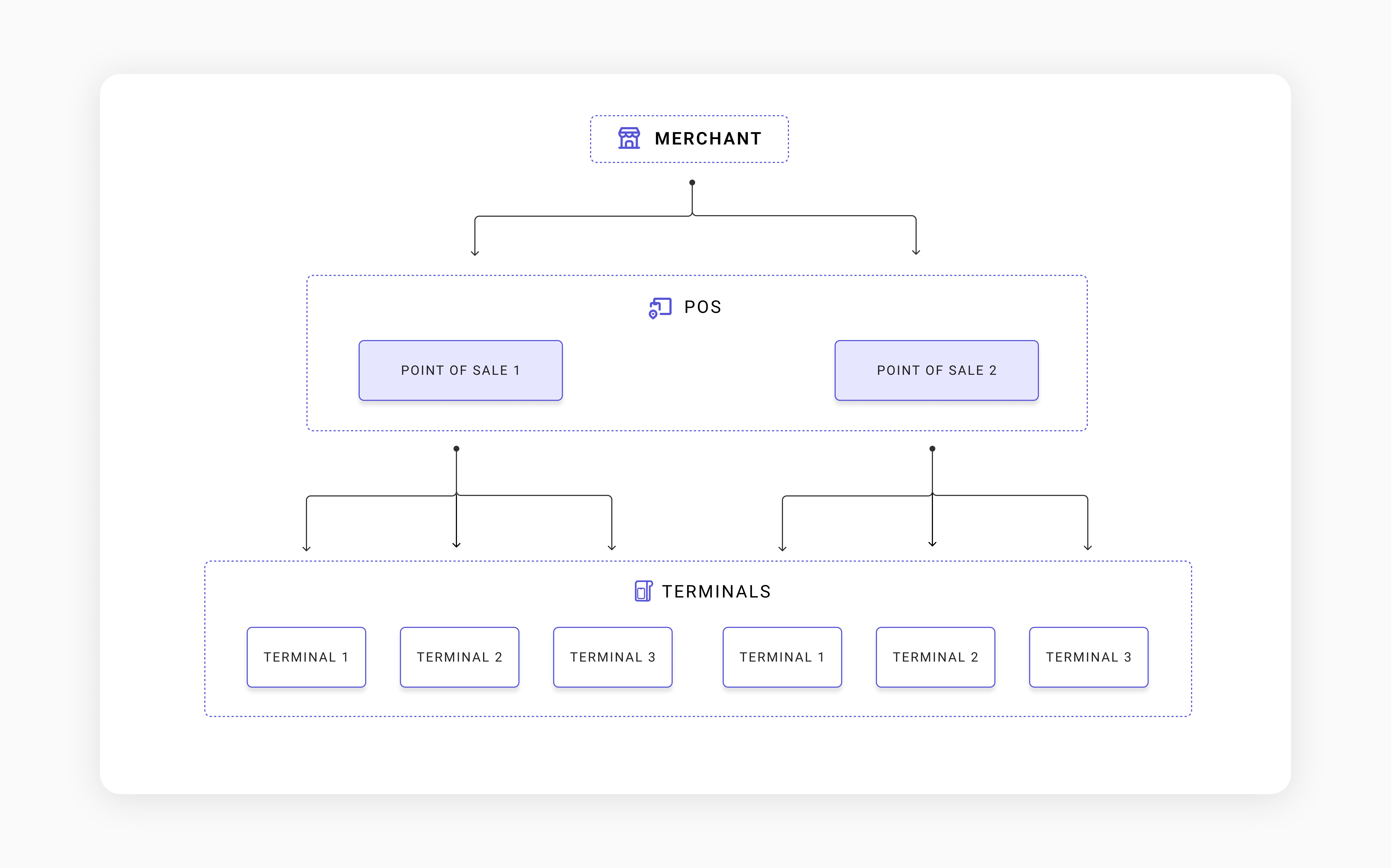 Es un forma lógica que tienen los clientes de organizar los diferentes merchants. Por defecto, un cliente al darse de alta va a tener una organización “default” la cual va a agrupar todos los merchants que se requiera. Se pueden crear todas las organizaciones que sean necesarias por parte del cliente.