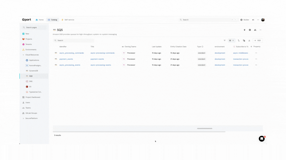 Para evitar que nuestro equipo de desarrolladores de producto tengan que aprender una herramienta de IaC sumado a que desde el equipo de Plataforma queremos tener la libertad de poder cambiar de rumbo si es que lo necesitamos, la gestión se hace desde Port (https://www.getport.io/), donde cada equipo responsable de la aplicación puede crear, actualizar y eliminar recursos con un simple formulario, ¿no me crees? te dejo un gif