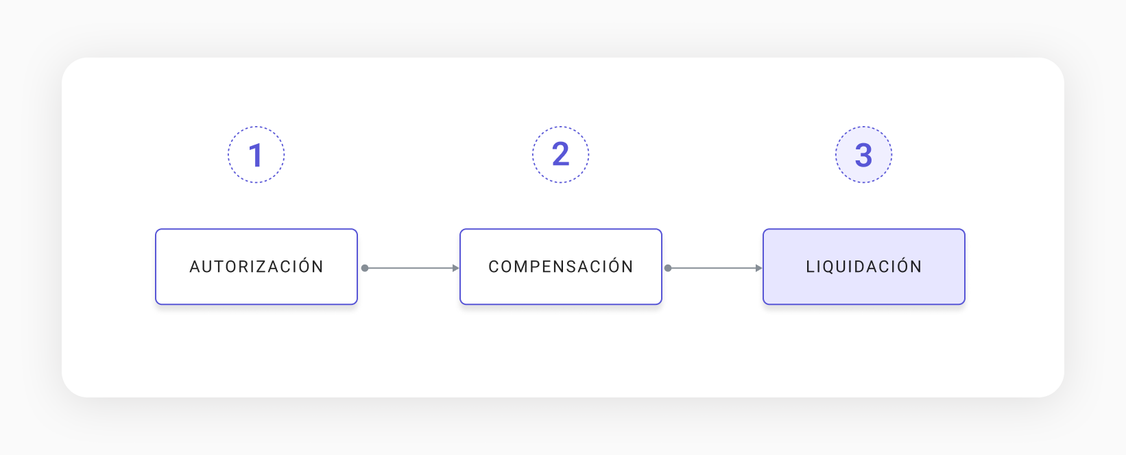 Es el paso final en el que los fondos se transfieren del banco del tarjetahabiente (emisor) al banco del comerciante (adquirente). La red de tarjetas facilita la transferencia de fondos entre el emisor y el adquirente, ajustando por cualquier tarifa.