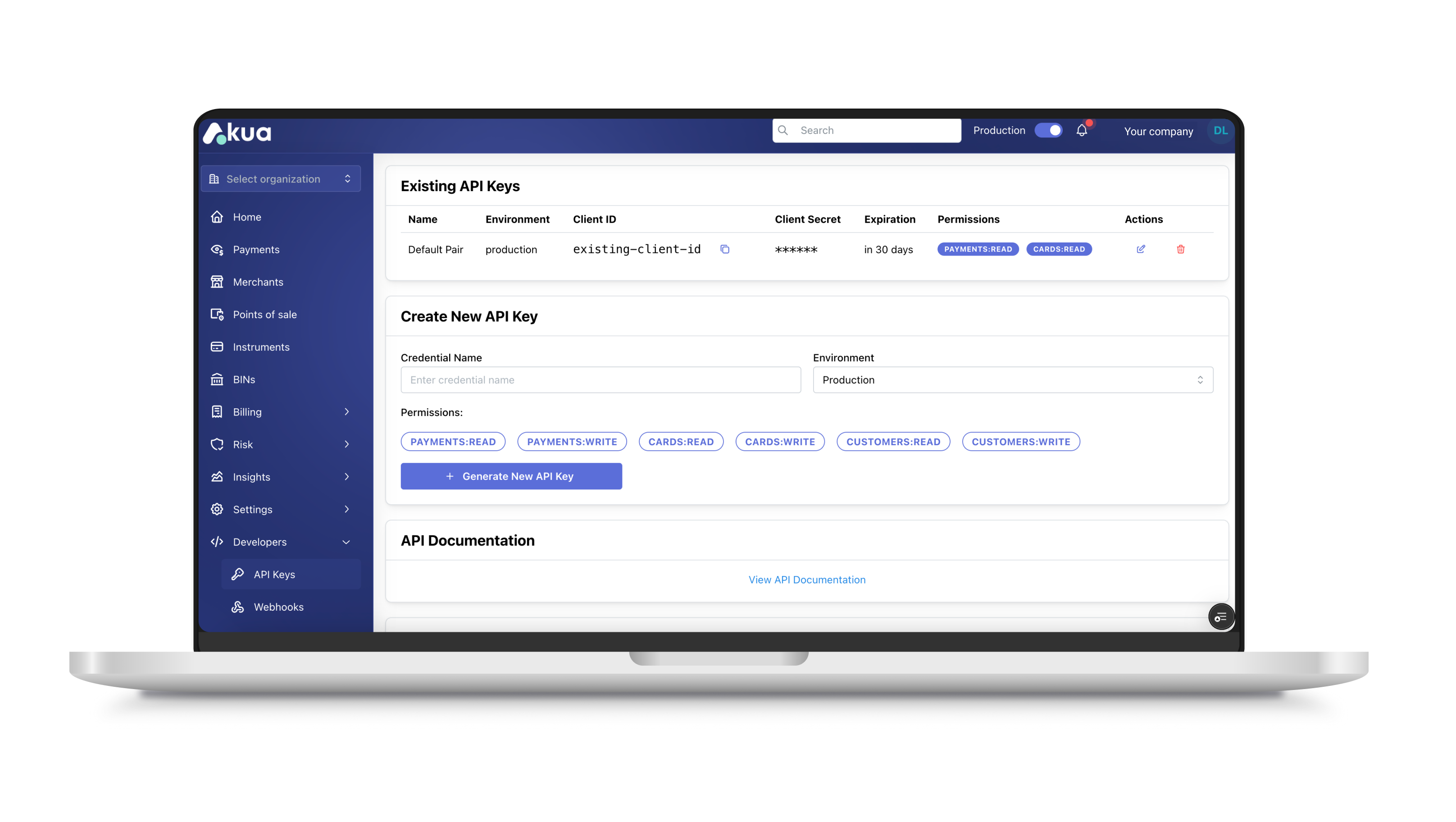 Sigue estos pasos para obtener tus credenciales de API e integrarte con nuestra plataforma. Este artículo te guiará a través de los pasos clave para generar claves de API y comenzar a operar con Akua.